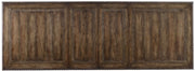 The drama of classic European design hits the heights with the grand Rhapsody Rectangle Dining Table with a scrolled trestle base. Imagine a 12th Century French chateaux that is been brought up to date without leaving a single charming detail behind. Choose to sit at the opulent yet inviting rectangular table with a carved border and scrolled bases in harp-like shapes. The walnut-colored reclaimed rustic finish projects laid-back luxury. At 88 inches long with two 20-inch leaves, this table can host a veritable banquet.