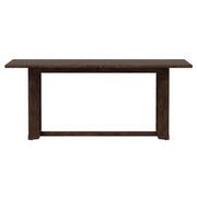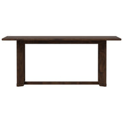 Sleek contemporary lines with intriguingly angled legs may catch your attention but the details of the Ronan collection will draw you in. Mango veneers applied over hardwood solids are polished off in a rich brown finish that flaunts the deep natural variations of the wood grain. Gently rounded edges pair with soft, textured fabric on the fully upholstered chairs and stools with tufting and exposed back frame details. In dining and gathering heights and a matching server, the Ronan collection proves that elevated and sophisticated can also be warmly inviting.