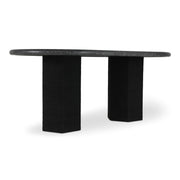 Gillian Segal for Moe's The Sartoria dining table invites conversation and collaboration. Its thick bullnose edge top is crafted with black granite, a reinterpretation of an older material into a weathered finish with a European feel. A jute-wrapped pedestal base complements the vibrant top for a touch of organic texture, function, and support for its smooth, inviting form.