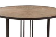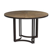 The Trucco Round Dining Table features modern transitional styling. The round, brown poplar wood top sits on an angular metal base. The steel frame is finished in a bronze powder coated finish, and is completed with adjustable floor levelers. Comfortably seats 4 people.