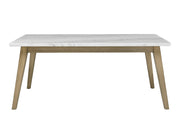 • Mid-century modern design with a Scandinavian accent, the 72-inch table features a beautiful marble top with knife edge atop canted solid wood legs in a beautiful expression of simple sophistication