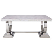 Zander - Dining Table - White Printed Faux Marble Top & Mirrored Silver