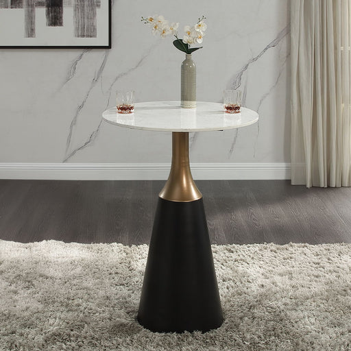 The Jaramillo collection boasts a sophisticated round counter height table with a sleek marble top and a fixed table top design. Supported by a str...