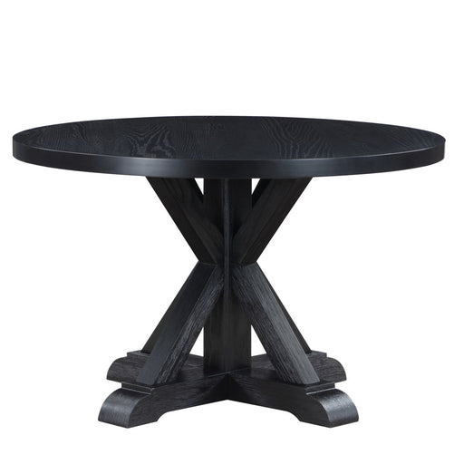 The Rylie 48-inch Round Trestle Table brings rustic design into the future in a cozy and intimate package that will dress up any room. With a finis...