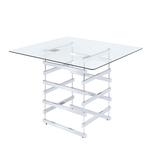 The Nadie counter height table features bold and light weight architectural lines. The chrome finished legs and stretchers create the implied sturd...