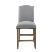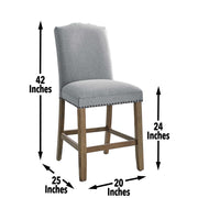 Refined rustic styling brings an elegant casual feel to the kitchen or dining area in the Grayson Counter Chair. The neutral Driftwood finish and ash-gray fabric is accented with a black nail head trim to blend well with many different decors. The 24? seat height on the chair allows a comfortable seat at 36? counters or to pair beautifully with the Grayson Counter Collection. Memory foam top layer and stretchers add to the comfort of the chair whether at a bar or table.