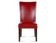 Comfortable contemporary style is easy with the Hartford Dining Collection, designed to bring out the best in all formal dining spaces of all sizes. The Hartford Parsons chair has straight dark finish legs and red leather upholstery on the seat and back, with a 1 memory foam cushion for extra comfort.