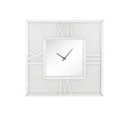 This Noralie square wall clock is covered in beveled mirrored panels that highlight its glamorous style. Featuring crushed acrylic faux diamonds that will naturally attract the eye. Durable engineered wood supports the frame. The clock face comes with a timeless roman numeral design.