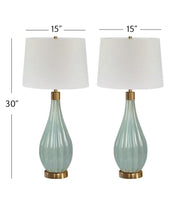 The Apex Table Lamp set features vibrant aqua ceramic bases accented with elegant gold details, creating a striking yet refined look. Each lamp is topped with a white tapered drum shade that softens the light, adding warmth and comfort to any space. Perfect for a variety of rooms, including living rooms, bedrooms, or home offices, the Apex Table Lamp set blends color and sophistication seamlessly. The combination of aqua and gold, along with its clean, classic design, makes this set a versatile addition to enhance any home decor. Minimum order quantity of 12.