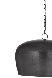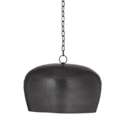 The Bell Pendant Lamp is crafted of iron with a dark bronze hammered exterior and a gold interior.
