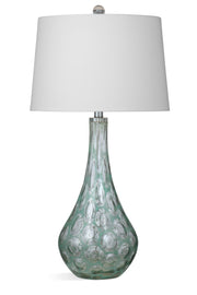 The Berry Table Lamp brings a touch of coastal charm to any room with its beautiful green art glass base. The intricate glasswork creates a captivating interplay of light and texture, perfectly complemented by the crisp white linen tapered shade. This lamp is a serene addition to spaces looking to evoke a breezy, coastal style.