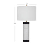 Discover the allure of the Charlie Table Lamp, a contemporary gem crafted with black and white marble. The octagonal-shaped lamp body adds a modern twist to the silhouette, complemented by a drum-shaped shade in elegant white linen. Enjoy adjustable illumination with the 3-way turn knob light switch, and with a generous 60-inch lamp cord, placement becomes effortless. Elevate your space with this modern marvel that seamlessly blends style and functionality.