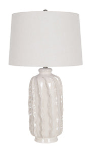 The Elian Table Lamp features a cream ceramic base with a wavy texture, adding subtle depth and elegance to any room. The off-white tapered drum shade softens the light, creating a warm and inviting atmosphere. Its simple yet stylish design makes it a versatile addition to various interior styles, from modern to traditional. The Elian Table Lamp combines functionality with a refined aesthetic, making it an ideal choice for adding a touch of sophistication to your space.
