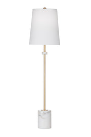 The Fairfield Table Lamp features a contemporary design with a sleek gold base, complemented by elegant white marble details. The refined combination of metal and marble adds a touch of luxury to any space, while the tapered white linen shade provides a soft, inviting glow. Perfect for a variety of rooms, including living rooms, bedrooms, or offices, this lamp blends modern style with timeless materials. The Fairfield Table Lamp is an ideal choice for anyone looking to add a stylish yet functional lighting solution to their home.