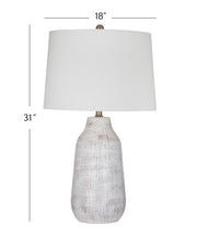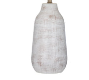 The Forcythia Table Lamp exhibits a contemporary ceramic body with a distinctive crackled glaze finish that adds both texture and visual interest. Its elongated, vase-like shape gives it an air of sophistication, while the neutral color palette allows it to blend into a range of interior styles seamlessly. The lamp is topped with a simple white drum shade, ensuring that it casts a soft, welcoming light, perfect for modern living spaces that require both style and function.