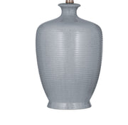 The Justice Table Lamp boasts a light gray ceramic base, textured with a subtle grid pattern that gives it depth and interest. The classic vase shape of the base is both timeless and elegant, while the gentle gray hue ensures it will blend seamlessly with a wide range of color schemes. A round, textured white shade completes the look, softly diffusing light to create a warm, inviting ambiance in any room. This lamp's understated beauty makes it a versatile choice for both contemporary and traditional interiors.