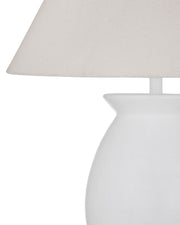 The Koler Table Lamp boasts a sleek, ceramic lamp body with a glossy white finish that exudes a clean and simple elegance. Its classic, rounded vase shape presents a timeless profile that is effortlessly versatile, suitable for a variety of decorating styles. The lamp is crowned with a complementary light beige lampshade, which adds a soft, diffused light to any room, enhancing the lamp's serene and polished aesthetic.