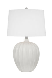 The Lotus White Table Lamp offers a refined take on coastal style with its carved base in a fresh white finish. Topped with a crisp linen shade, it blends clean lines and soft texture for a modern, serene look.