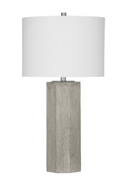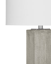 The Luna Table Lamp is characterized by its gray cement lamp body, offering a raw, industrial aesthetic that is softened by the classic white drum shade on top. The textured surface of the cement provides a tactile quality and visual depth, which is complemented by the lamp's clean, cylindrical form. This lamp merges the rugged beauty of cement with the simplicity of modern design, making it a versatile piece that can add a touch of minimalist sophistication to any room.