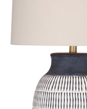 The Marrengo Table Lamp stands as a testament to exquisite craftsmanship, expertly fashioned from durable ceramic material, presenting a blend of both resilience and aesthetic allure. Finished in a captivating matte blue, the lamp exudes a sense of modern sophistication. Accompanied by a tapered shade in an elegant off-white hue, the Marrengo Table Lamp achieves a harmonious balance between contemporary design and timeless charm. The carefully selected materials and meticulous attention to detail make this lamp a distinguished addition to interior spaces, seamlessly merging enduring design with a touch of modern allure. The matte blue finish complements the ceramic body, casting a visual delight. With its thoughtful combination of materials and colors, the Marrengo Table Lamp not only enhances the aesthetic appeal of any room but also provides a soft and inviting illumination, making it a versatile and stylish addition to interior decor.