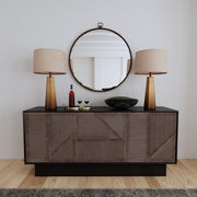 The Marsham Table Lamp, with its brushed gold finish, embodies a sleek modern aesthetic that's sure to enrich any room. Its metal base provides a stable foundation, while the beige linen tapered drum shade casts a warm, inviting light. This lamp is a stylish nod to contemporary design, offering a hint of sophistication with its golden hues.