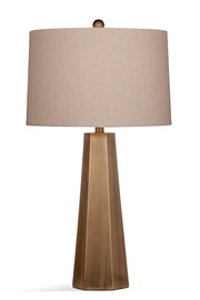 • The Marsham Table Lamp boasts glam styling in brushed gold metal and champagne finish
