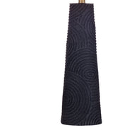 The Merrick Table Lamp is crafted of resin with a drum shade. Finish: black. The hand-crafted details produced by a skilled artist lends itself to a unique technique and will vary slightly.