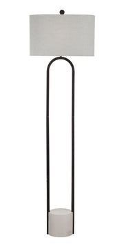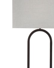The Middlefield Floor Lamp blends contemporary style with industrial edge, featuring a sleek black metal arch that frames its form with striking simplicity. Anchored by a solid concrete base and topped with a gray linen oval shade, it brings balanced contrast and modern character to any space. This lamp is a sculptural lighting piece that offers both function and a refined statement.
