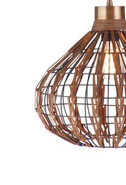 The Pepper Moon Pendant Lamp is crafted of Rattan in a Dark Brown Rattan and Antique Brass Finish. Weight: 3.5 LBS. Cord Length 72. Material: Metal and Rattan.