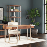 The Shine Desk Lamp is crafted of iron with a black nickel finish.