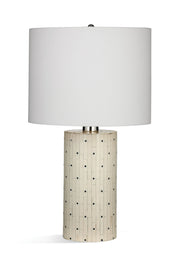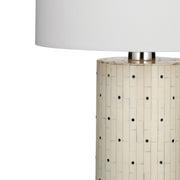 The Sweere Table Lamp is crafted of bone with a white drum shade. The lamp body is finished in black and creame bone.