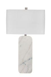- Contemporary table lamp with a sleek white marble base featuring natural veining for a unique look