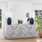 The Miranda Table Lamp features an urn-style base in a rich matte blue finish, adding a bold and vibrant touch to any room. The white drum shade softens the light, creating a warm and welcoming atmosphere. This lamp combines classic design with a modern twist, making it a versatile addition to various decor styles. The Miranda Table Lamp brings both style and functionality, offering a striking yet balanced look for your space.
