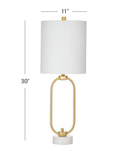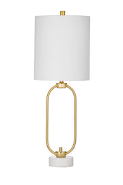• The brass table lamp features a glam style