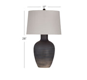 The Volga Table Lamp is crafted of resin with a neutral tapered shade.