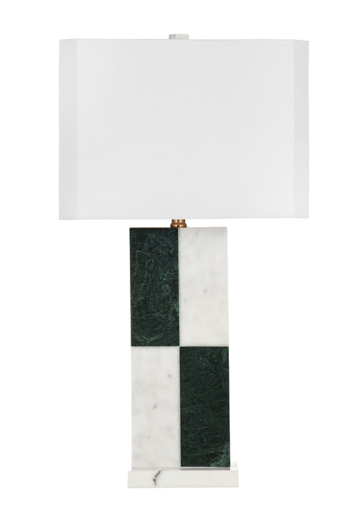 The Midcrest Table Lamp brings a refined edge to modern interiors with its unique checkered marble base, crafted from alternating green and white m...