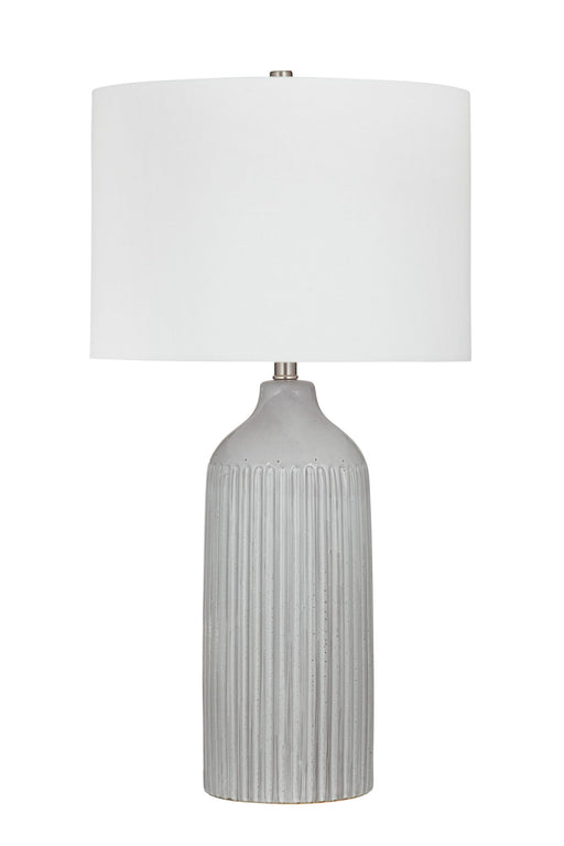 The Dorchester Table Lamp blends traditional character with a refined contemporary touch. Its grey ceramic base features subtle carved detailing, a...