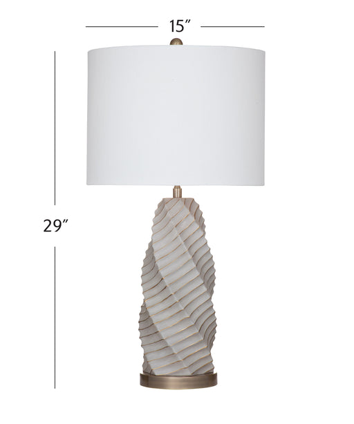 The Vanessa Table Lamp features an elegantly spiraled body, adding a dynamic sense of movement to the design. Its textured surface and the neutral ...