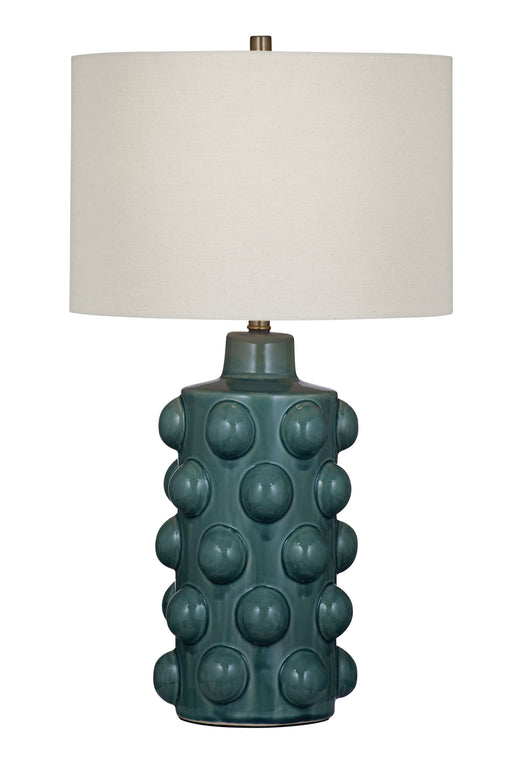 The Lynn Table Lamp features a blue-green ceramic base with intricate knob details, adding a touch of artistry and character to any space. The soft...