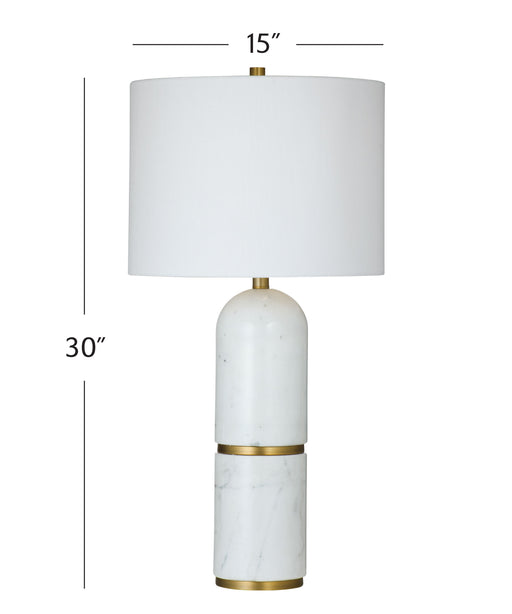 The Fairfield Table Lamp features a contemporary design with a sleek gold base, complemented by elegant white marble details. The refined combinati...
