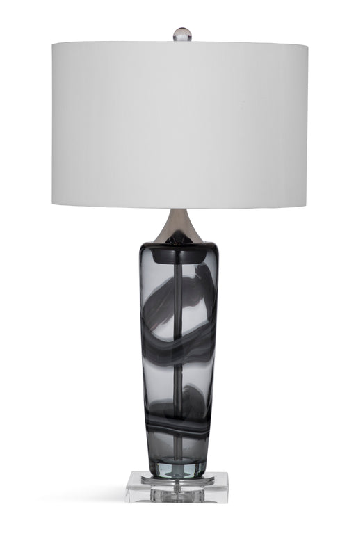 The Nikola Table Lamp captivates with its wispy gray strokes and sleek white drum shade, casting a shadowy yet alluring glow. Perfect for modern sp...