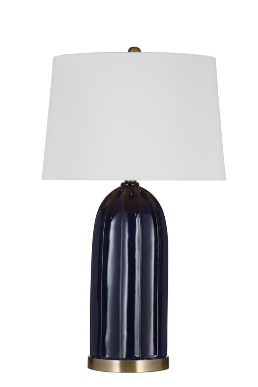 Immerse your space in contemporary charm with the Susan Table Lamp. The navy blue ceramic body, adorned with ridged detailing, seamlessly complemen...