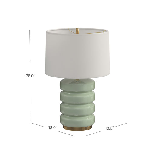 The Marzz Table Lamp is crafted of ceramic and metal and features a drum shade. Finished in light green and antique brass. Features include a 3 way...
