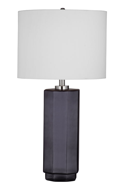 The Zeus Table Lamp is crafted of glass and features a drum shade. Finished in a smoke gray.Product Features Lamp body is constructed with Glass Bu...