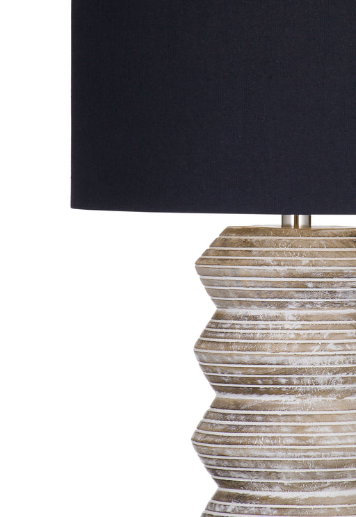 The Sands Table Lamp is crafted of ceramic and features a drum shade.Product Features Lamp body is constructed with Ceramic Bulb Type A required, b...