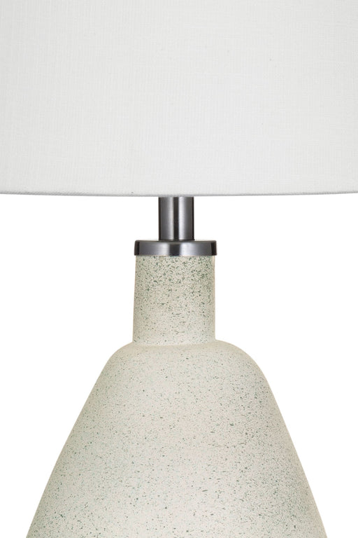 The Thayer Table Lamp features a curve base made of glass with a crystal base and a white tapered shade.Product Features The white glass bulb shape...