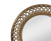 The Alissa Wall Mirror showcases a traditional round design with a cut-out woven pattern, finished in antique gold for an elegant touch. Crafted with meticulous attention to detail, this mirror exudes timeless charm and sophistication, making it a captivating addition to any room. Elevate your decor effortlessly with the classic allure of the Alissa Wall Mirror.