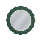 The Green Altair Wall Mirror features a round design with inverted curved frame detailing, adding a striking touch to any space. The rich green finish brings a bold, modern flair, making it an eye-catching piece in your home. Whether hung in a living room, bedroom, or hallway, this mirror complements a variety of interiors with its contemporary style. The unique frame and vibrant color offer a perfect balance of elegance and boldness, enhancing the room with both functionality and design.
