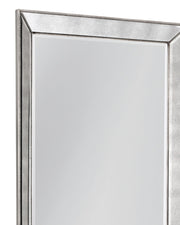 • This large floor mirror features a silver antiqued mirror frame bringing a glamorous style to the home
