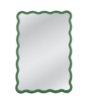 The Cassia Wall Mirror is an ideal accent to enliven your space, boasting a fun green frame for a vibrant touch. Its wavy edges offer a playful twist on the traditional rectangular shape, adding character to any room. Crafted with a green finish, this mirror complements your decor effortlessly.